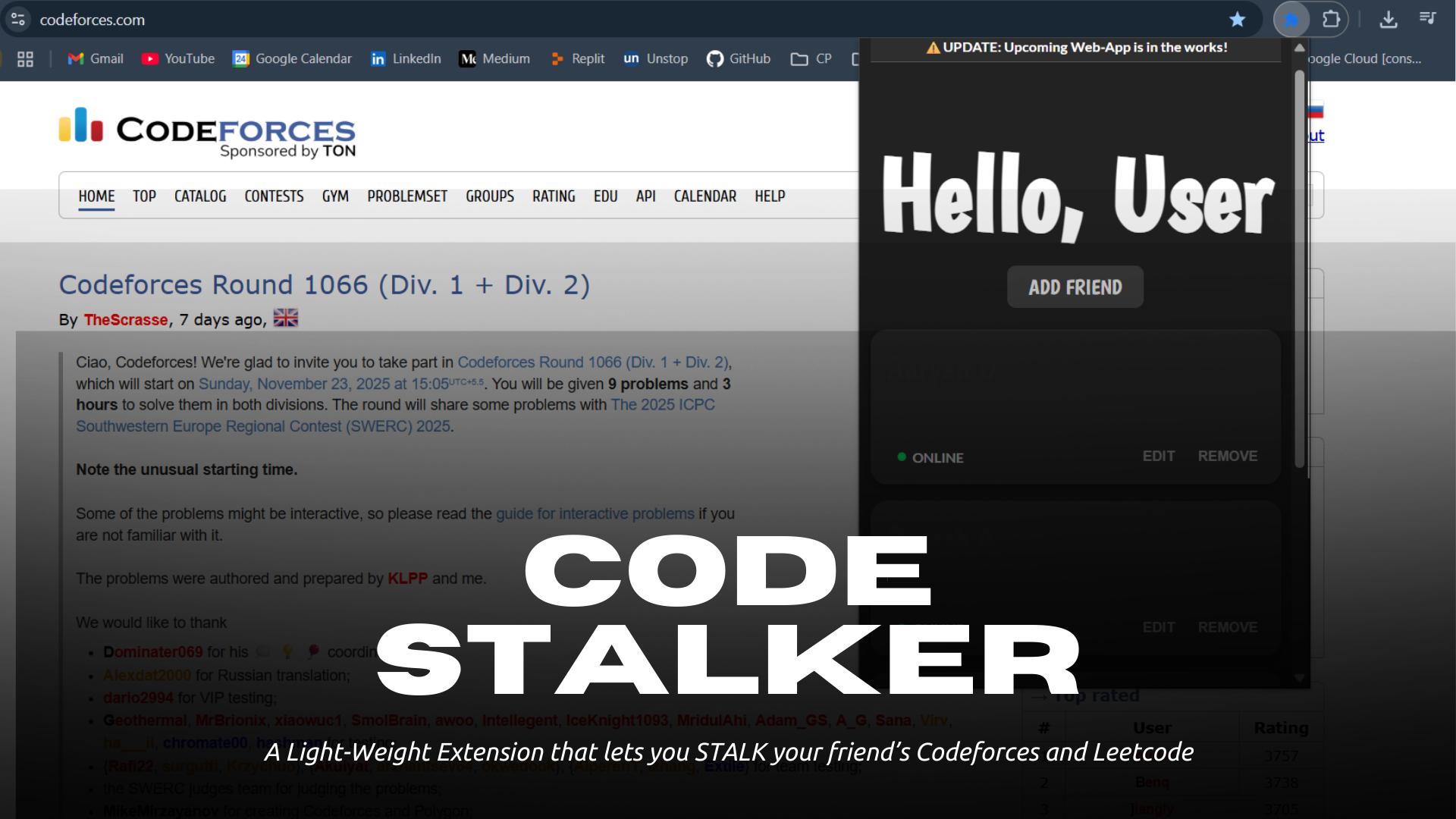 A Lightweight extension that allows you to stalk your friends' Leetcode and Codeforces, and see their CF Status